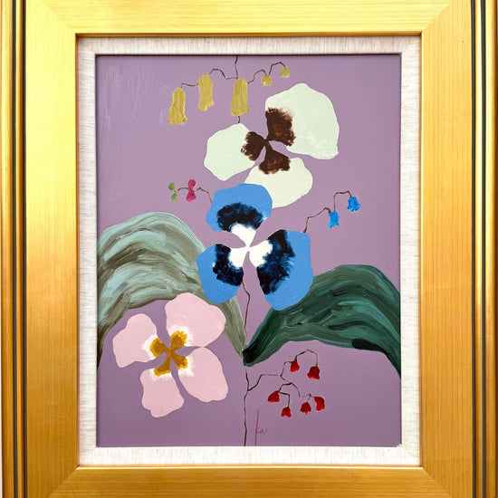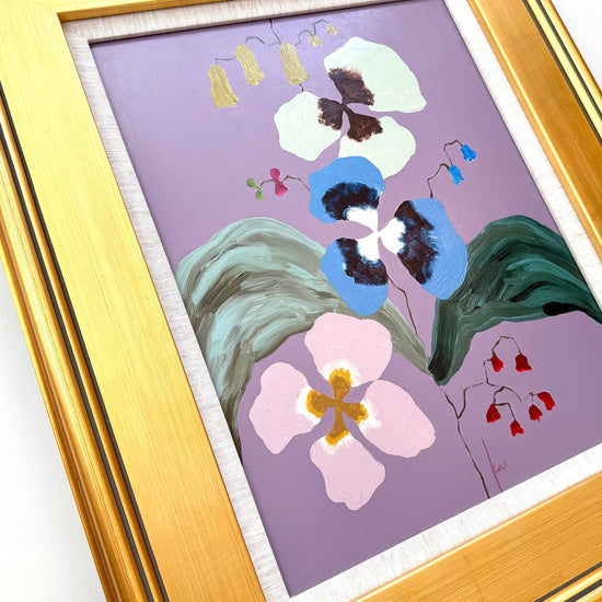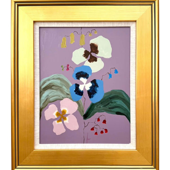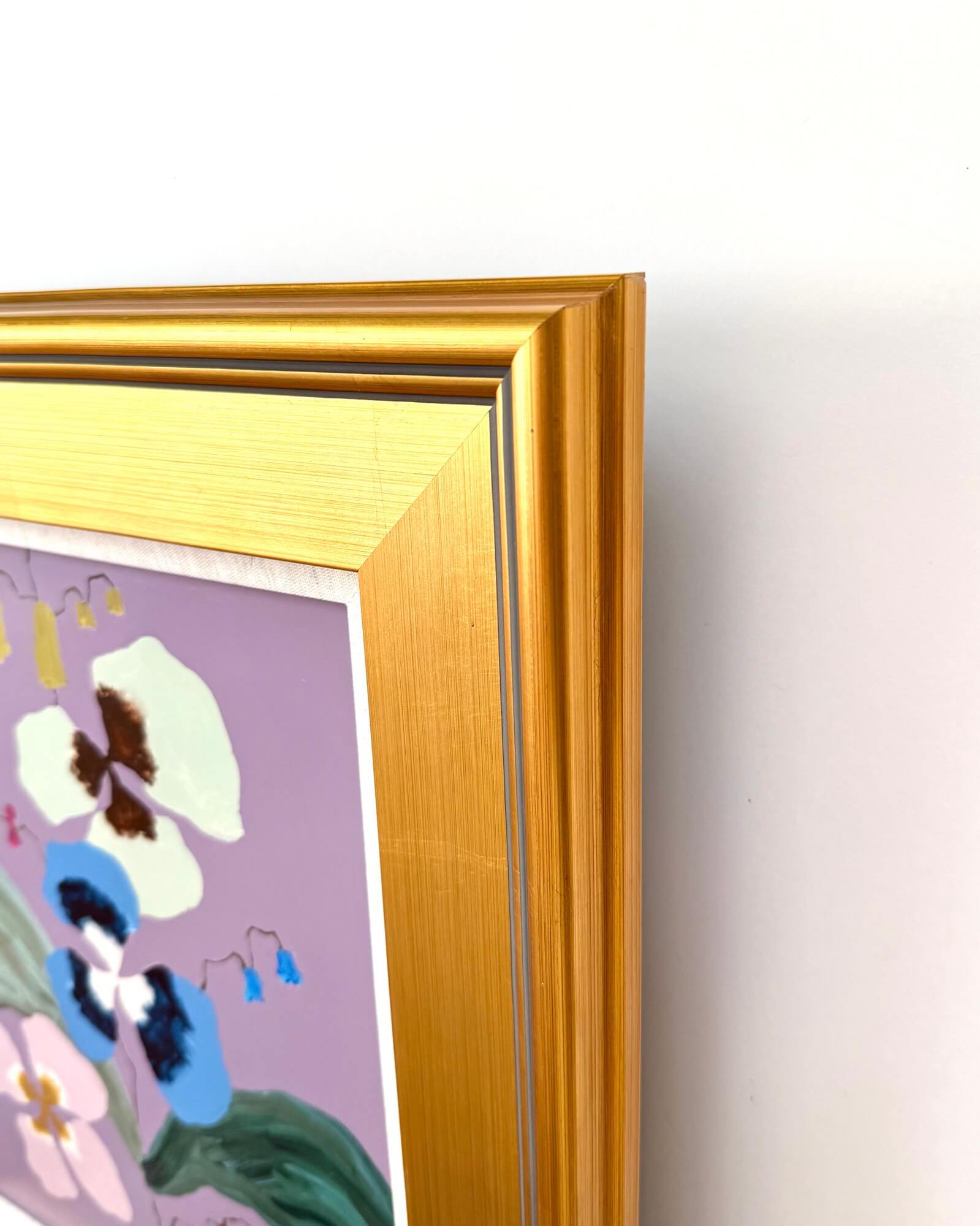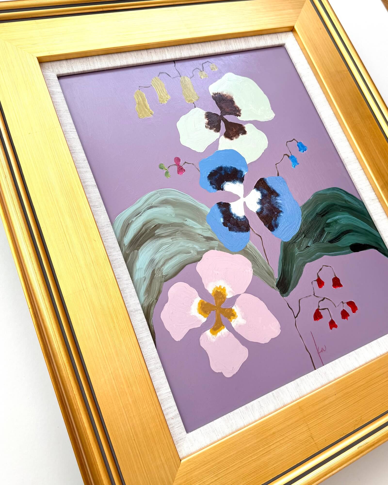 Original acrylic painting on panel, framed in vintage inspired gold.
