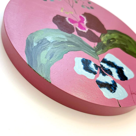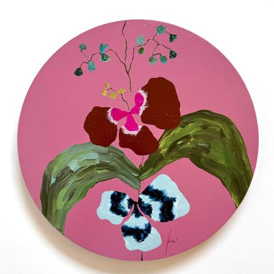Original acrylic painting on 10" round cradled wood with 7/8" inch depth.