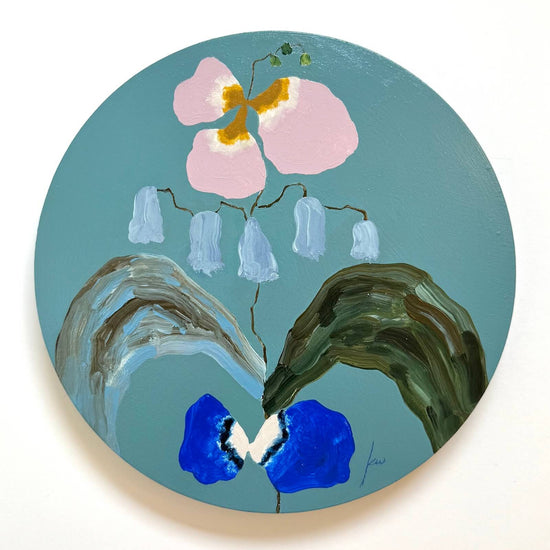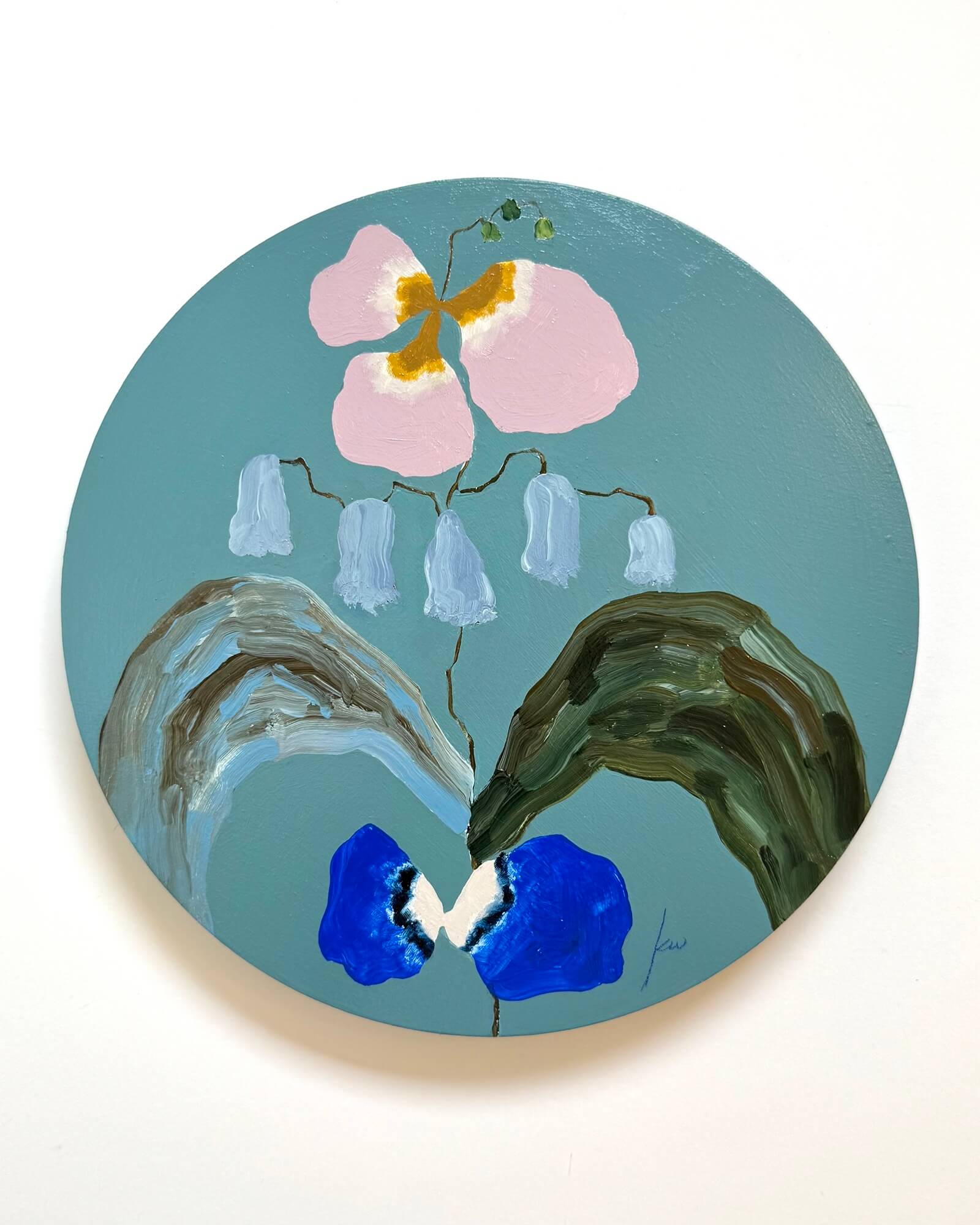 Original acrylic painting on 10" round cradled wood with 7/8" inch depth.
