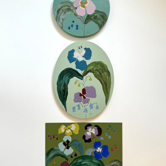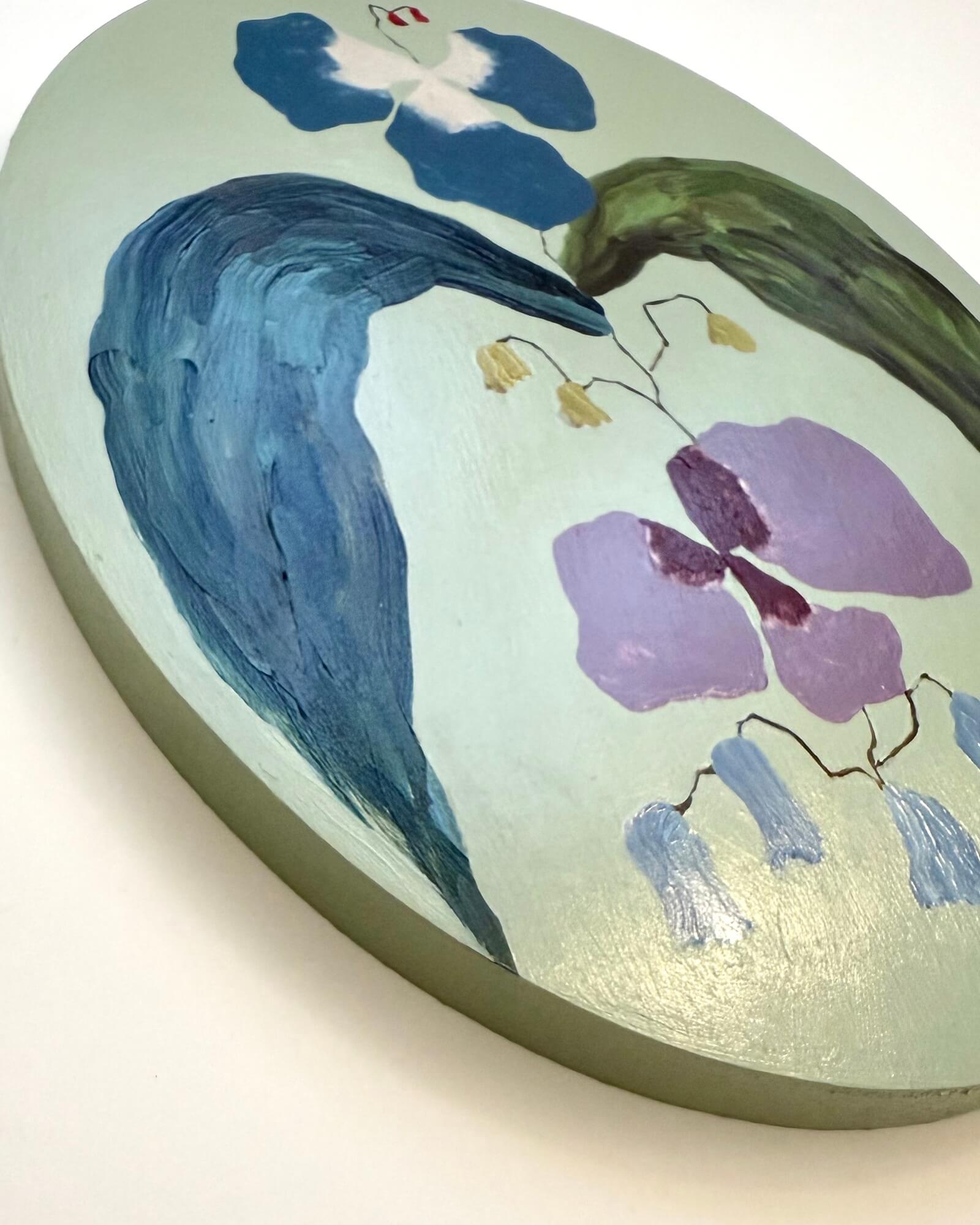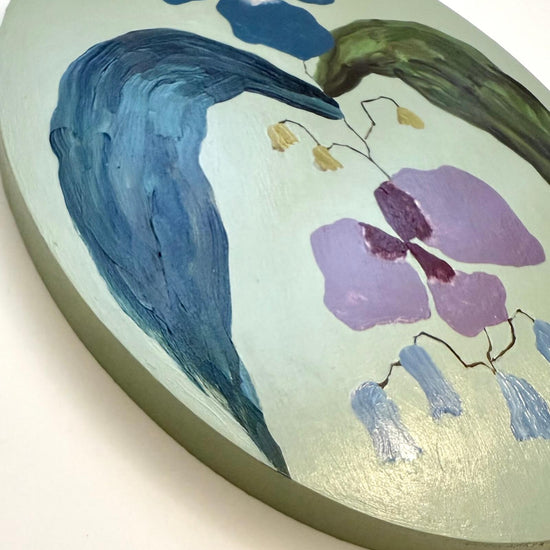 Original acrylic painting on 11x14" oval cradled wood with 3/4" inch depth.