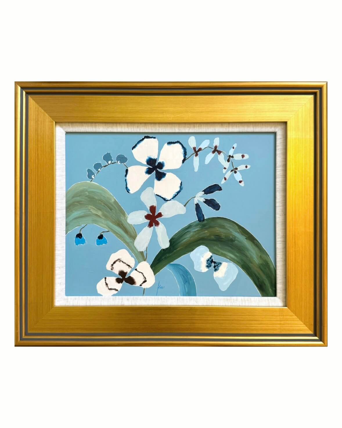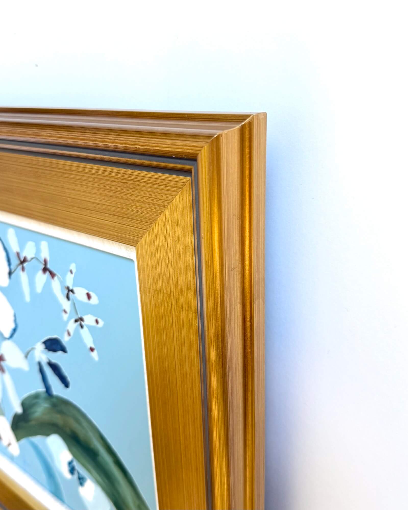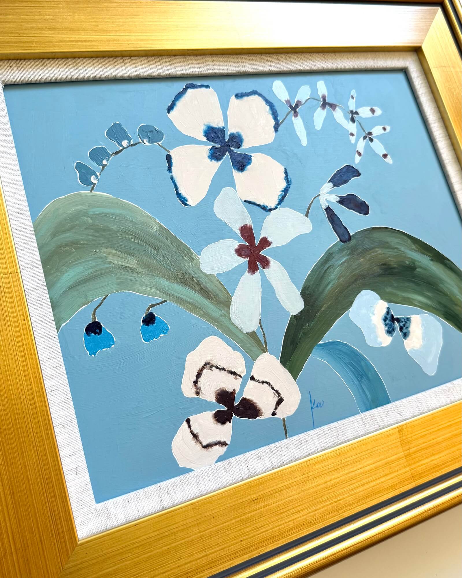 Original acrylic painting on panel, framed in vintage inspired gold.