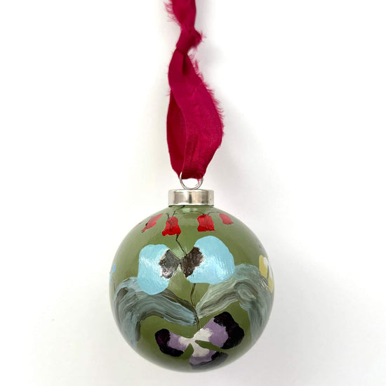 3" round hand-painted ceramic ornament